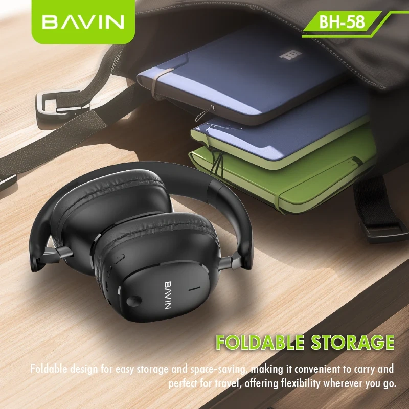 Bavin BH58 headphones offer clear audio, punchy bass, and a comfortable over-ear design for everyday listening. Featuring a durable build, adjustable headband, and easy controls, they are perfect for music, calls, and daily use.