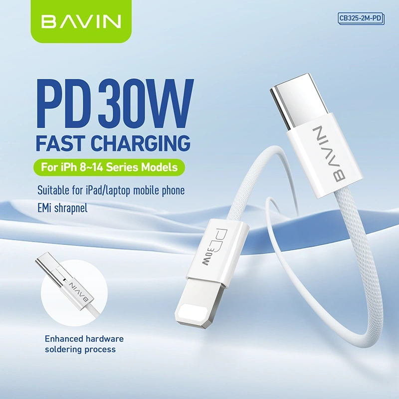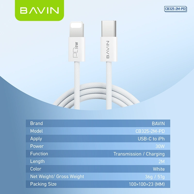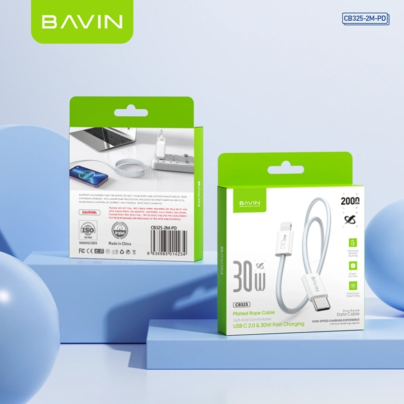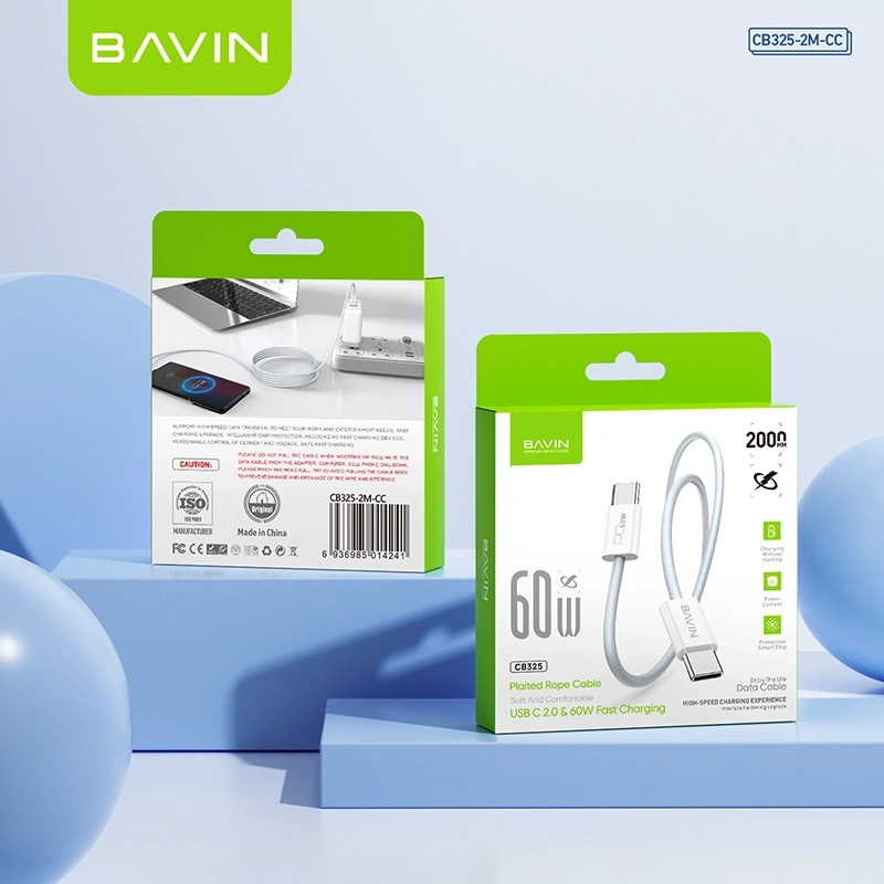 BAVIN CB325 High-Performance Reinforced Fast Charging Cable Built for durability and speed, the BAVIN CB325 series features a heavy-duty reinforced joint design that can withstand significant tension. Whether you need the 60W Type-C to Type-C for your laptop or the 30W PD for your iPhone, this nylon-braided cable delivers stable power and 480Mbps data transfer. Available in multiple lengths (1m, 1.5m, and 2m), it’s the dependable choice for a clutter-free and long-lasting charging setup.