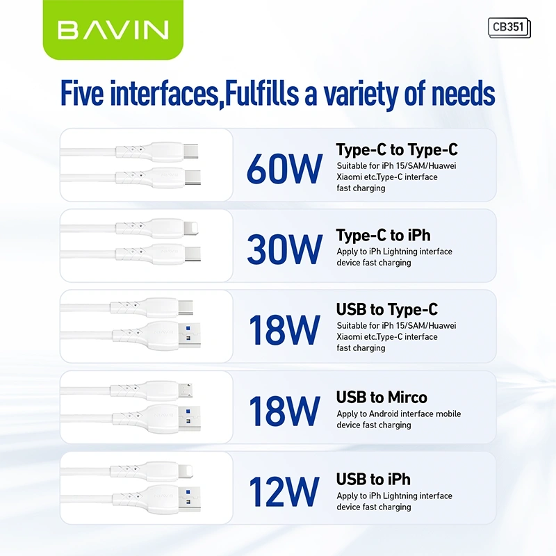 The Bavin USB-Micro Data Cable CB351 provides fast charging and reliable data transfer for Micro-USB devices. Durable and flexible, it ensures stable performance for everyday use.