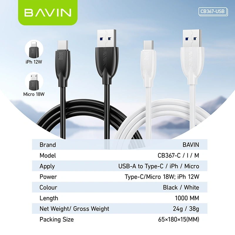 The Bavin USB‑Micro/Type C/ Lightning/ CC/ PD Data Cable CB367 is a practical and reliable cable designed to deliver fast charging and stable data transfer for devices with Micro USB ports such as older Android phones, tablets, Bluetooth speakers, and other electronics. Featuring 18W fast‑charging support, this cable provides quicker charging than standard cables, enabling your devices to power up efficiently when paired with a compatible charger.