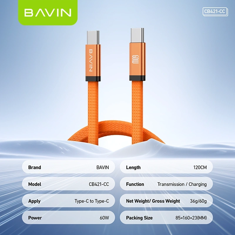 The BAVIN CB421-CC is engineered for users who want a premium feel without sacrificing technical performance. By combining high-wattage output with a specialized flexible exterior, this cable provides a superior daily charging experience for all your Type-C devices.