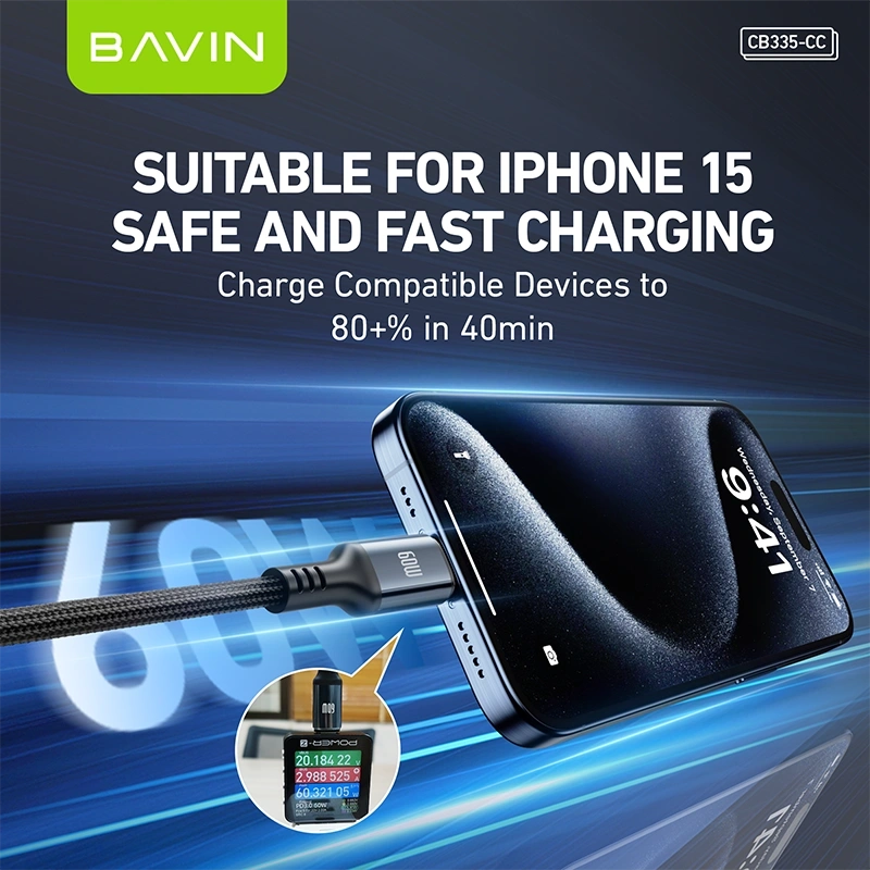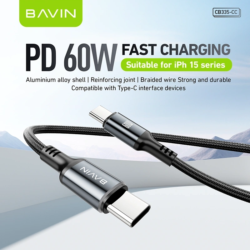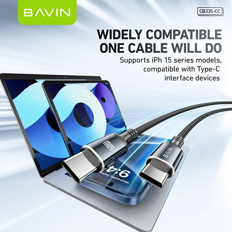 The BAVIN CB335-CC USB-C to USB-C Cable supports up to 60W fast charging, making it ideal for smartphones, tablets, and laptops. With a durable braided design and 1.2-meter length, it ensures stable power delivery and reliable data transmission for everyday use.