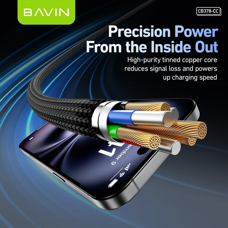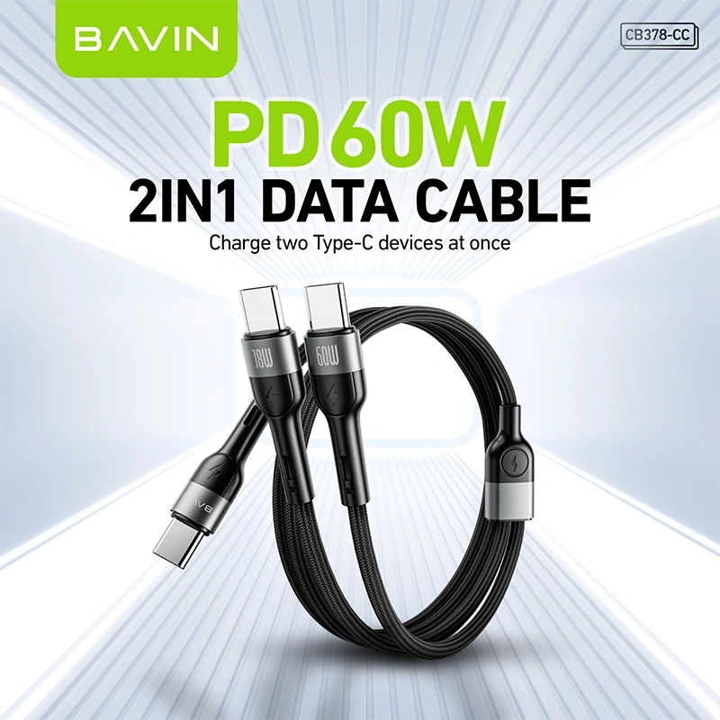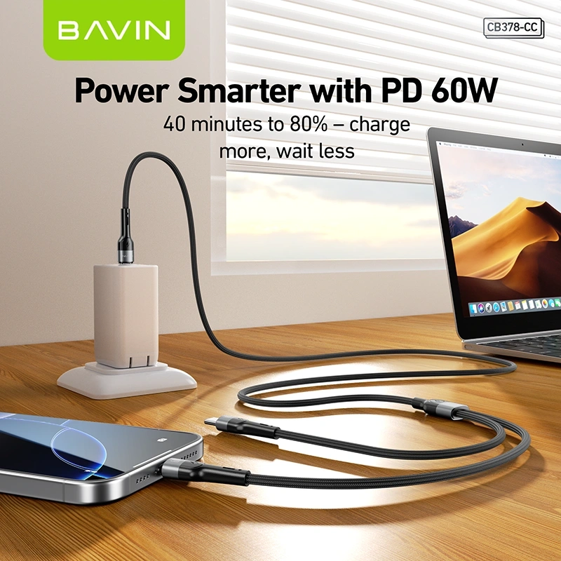 The CB378-CC Type-C to Type-C Cable from BAVIN is a high-performance charging and data cable designed for fast, reliable power delivery. Supporting up to 60W PD charging and 18W output options, this durable 1.2m braided cable is ideal for smartphones, tablets, and other USB-C devices.