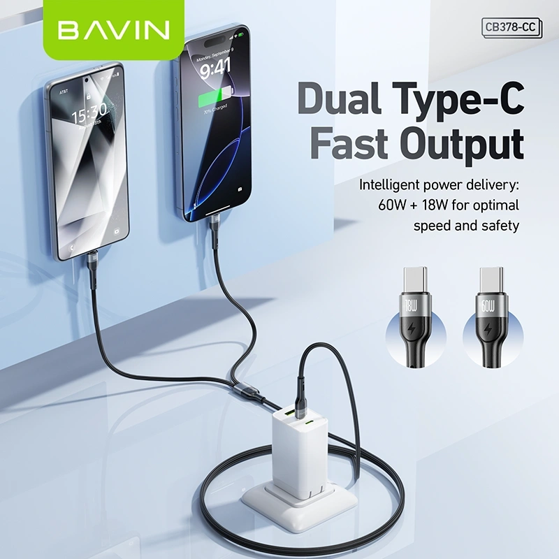 The BAVIN CB378-CC Type-C to Type-C Cable is engineered for fast charging and efficient data transmission, making it a reliable solution for modern USB-C devices. Designed with dual Type-C interfaces, it supports high-speed Power Delivery (PD) charging up to 60W, while also offering 18W compatibility for smaller devices.