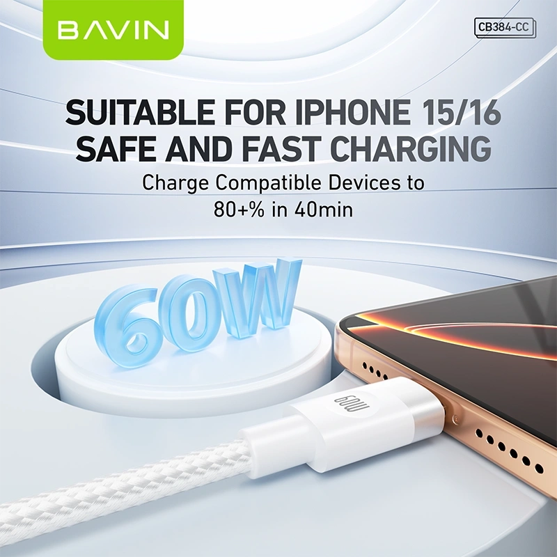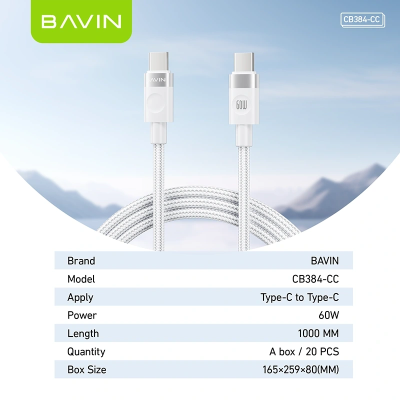 The BAVIN CB384-CC Type-C to Type-C Cable is built to deliver fast, stable, and efficient charging for modern USB-C devices. Supporting up to 60W Power Delivery (PD), this cable is suitable for powering smartphones, tablets, power banks, and compatible laptops with reliable high-speed performance.