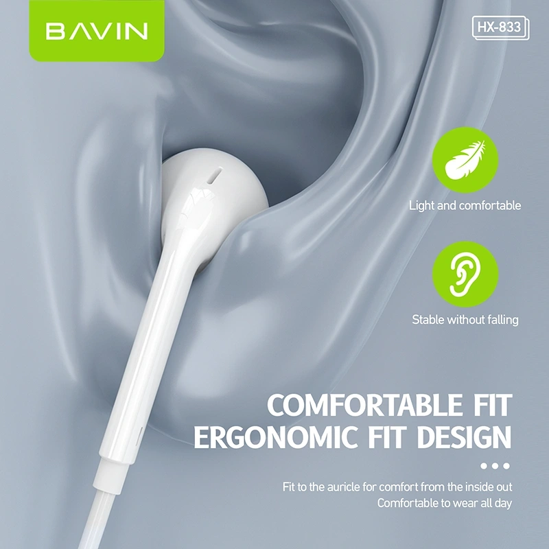 The BAVIN HX-833 Wired In-Ear Headset combines simplicity, comfort, and reliable sound performance for everyday audio needs. Designed with an ergonomic in-ear structure, it fits comfortably in the ear and provides stable wear during long listening sessions. Whether you’re listening to music, attending calls, or watching videos, the headset delivers clear and balanced audio.