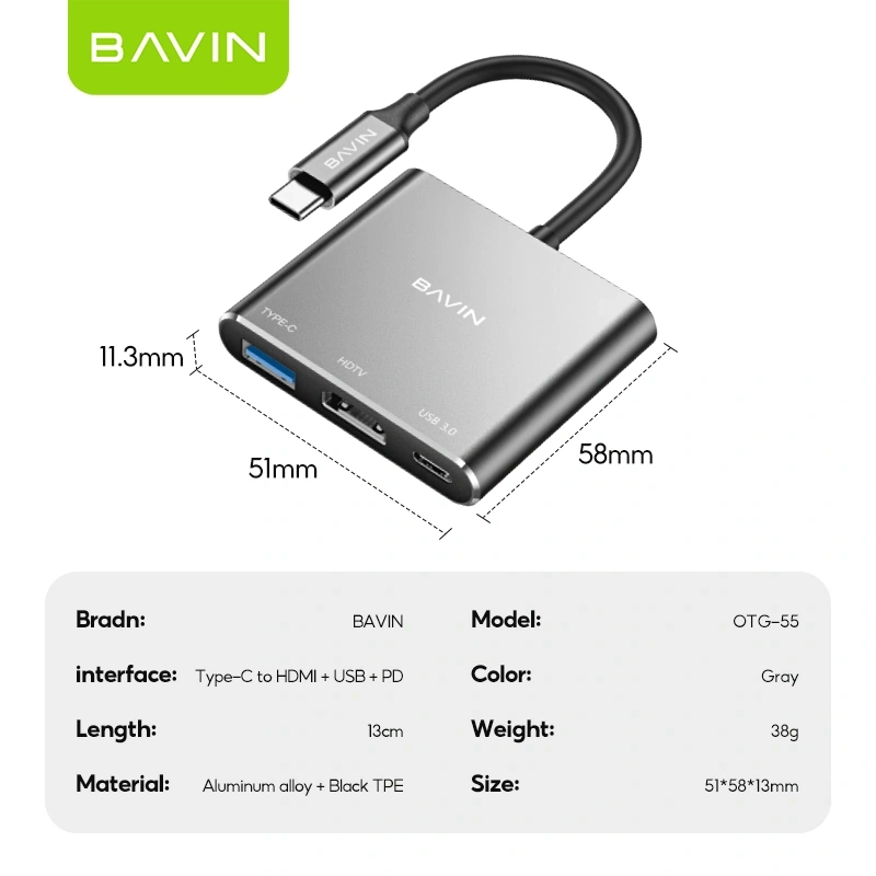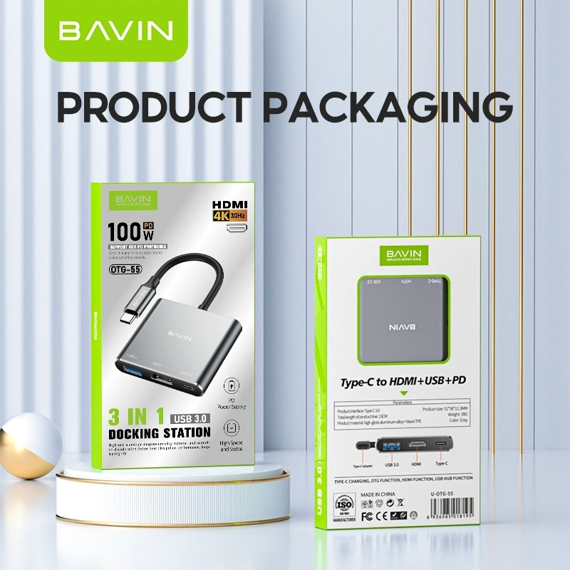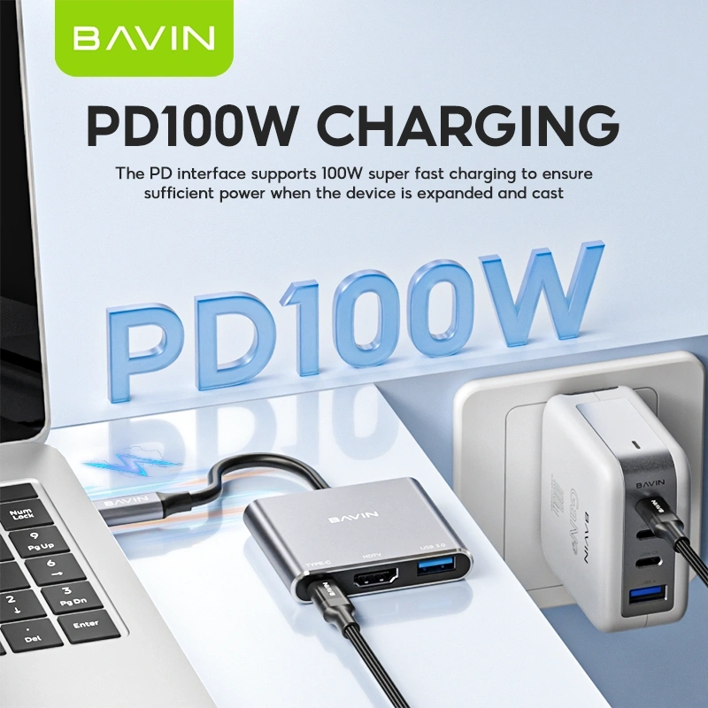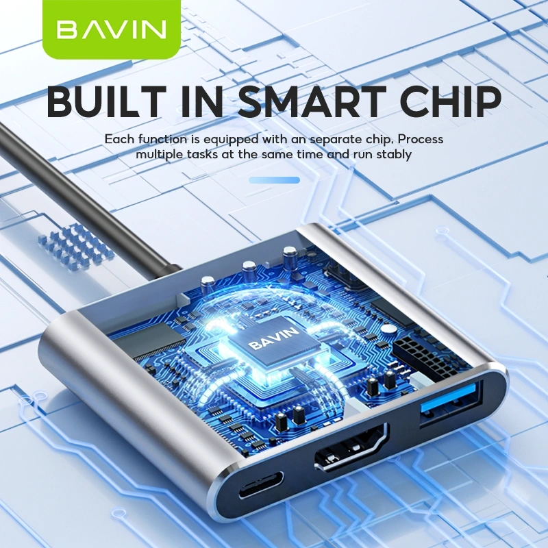 Turn one USB-C port into a complete workstation with the BAVIN 3-in-1 Docking Station. Designed for productivity and entertainment, this compact hub allows you to connect an external display, transfer data at high speed, and power your device simultaneously.