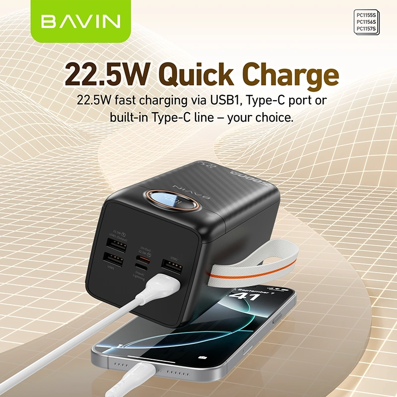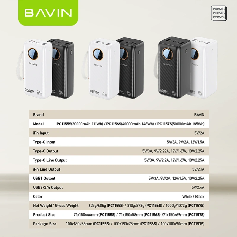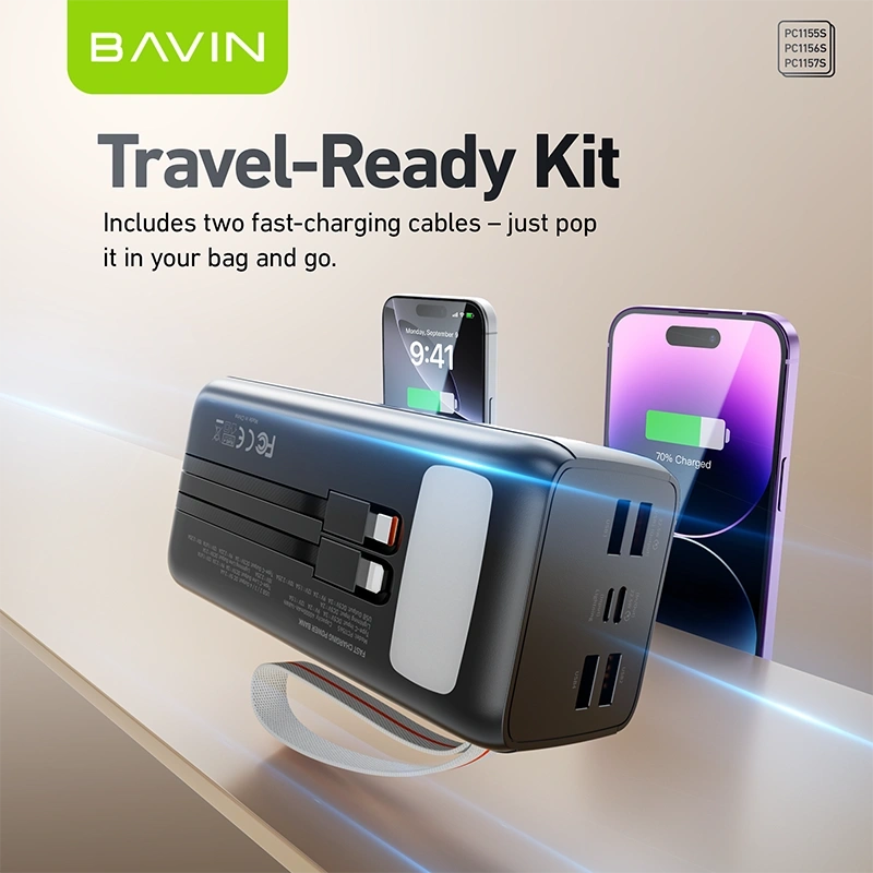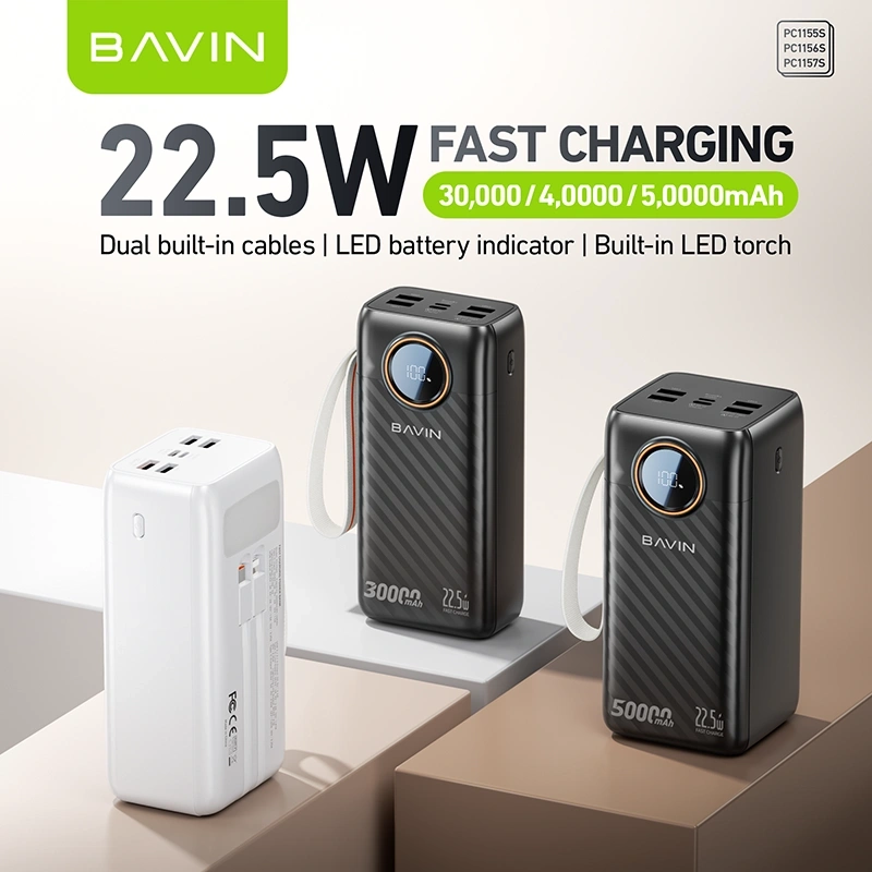 Bavin PC1155S 30,000 mAh power bank offers massive capacity and fast, reliable charging for smartphones, tablets, and other devices. Durable, portable, and high-performance, it’s perfect for travel, outdoor use, and daily charging needs.