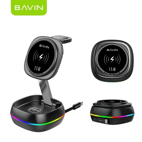 The BAVIN PC1199 3-in-1 Magnetic Wireless Charger is a convenient and modern charging solution designed to power multiple devices at the same time. It allows users to charge a smartphone, smartwatch, and wireless earbuds simultaneously, helping reduce cable clutter and keeping your workspace organized. This makes it an ideal accessory for people who use several devices daily and want a simple, efficient way to keep them charged.