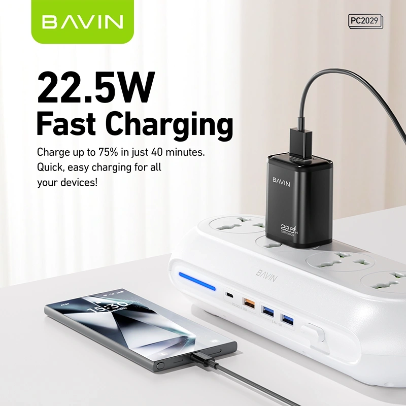 The Bavin Universal Adapter Charger PC2080 is a powerful and versatile charging solution designed to keep all your devices powered up in one compact unit. Featuring 45W GaN (Gallium Nitride) fast charging, this universal adapter delivers efficient and rapid power to smartphones, tablets, laptops, and other USB‑C devices with support for Power Delivery technology.