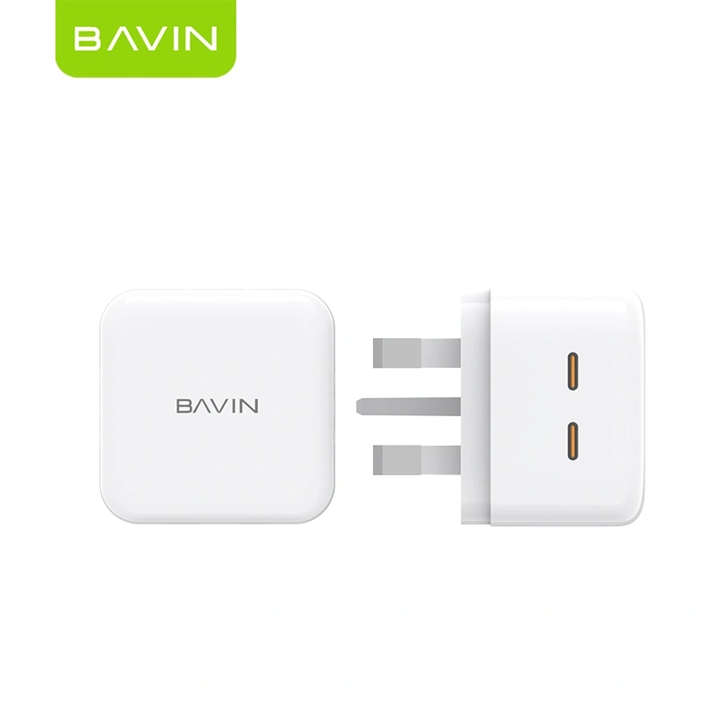 The BAVIN PC853E is a 35W dual USB-C PD fast charger. It features an intelligent chip for safe power delivery, a foldable plug for travel, and fireproof housing. Ideal for iPhones and tablets.