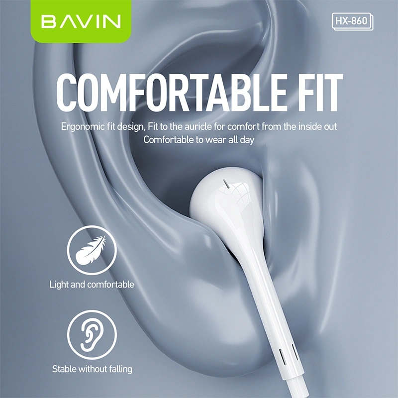 Comfort is a priority with the BAVIN HX860. The lightweight earbuds fit snugly in your ears, making them comfortable for long listening sessions such as commutes, workouts, or work breaks. The cable is designed for flexibility and durability, helping resist everyday wear and tear.