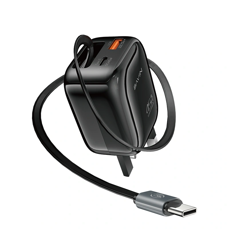 Bavin Lightning Charger PC2077E is a compact fast charger with built‑in Lightning and USB‑C ports, delivering efficient charging for iPhones and other devices with safety protections.
